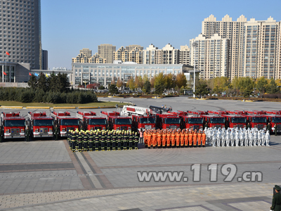 10月17日,哈爾濱市21臺特種消防車輛投入執(zhí)勤戰(zhàn)備啟動儀式在哈爾濱市政府隆重舉行。市委常委、市政府副市長柳士發(fā),市政府黨組成員、市公安局局長趙中超參加儀式。儀式由消防支隊政委張小城主持。
